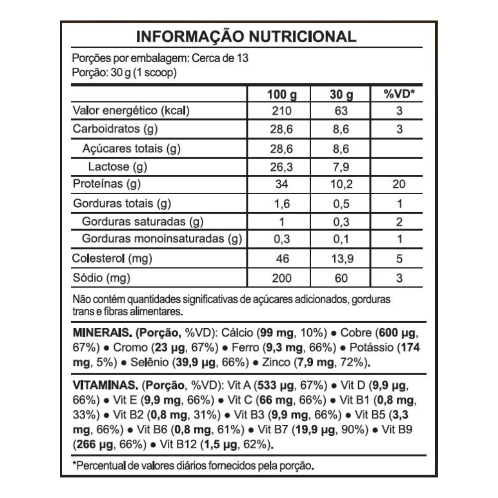✔ Com Proteínas de Alto Valor Biológico – manutenção da massa muscular