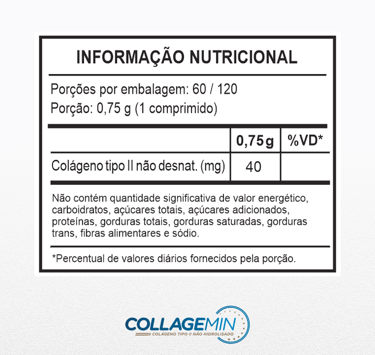 O Collagemin foi desenvolvido com colágeno tipo II que é uma proteína fibrilar que compôe, de forma primária e mais abundante, a cartilagem articular e auxilia na manutenção da função articular.