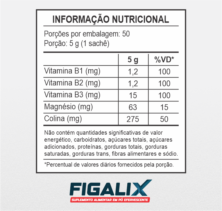 Figalix é um suplemento com alto teor de colina, tiamina, riboflavina e niacina. A colina contribui para o metabolismo lipídico. A tiamina, a riboflavina, a niacina e o magnésio auxiliam no metabolismo energético e no metabolismo de proteínas, carboidratos e gorduras. O magnésio auxilia no equilíbrio dos eletrólitos.